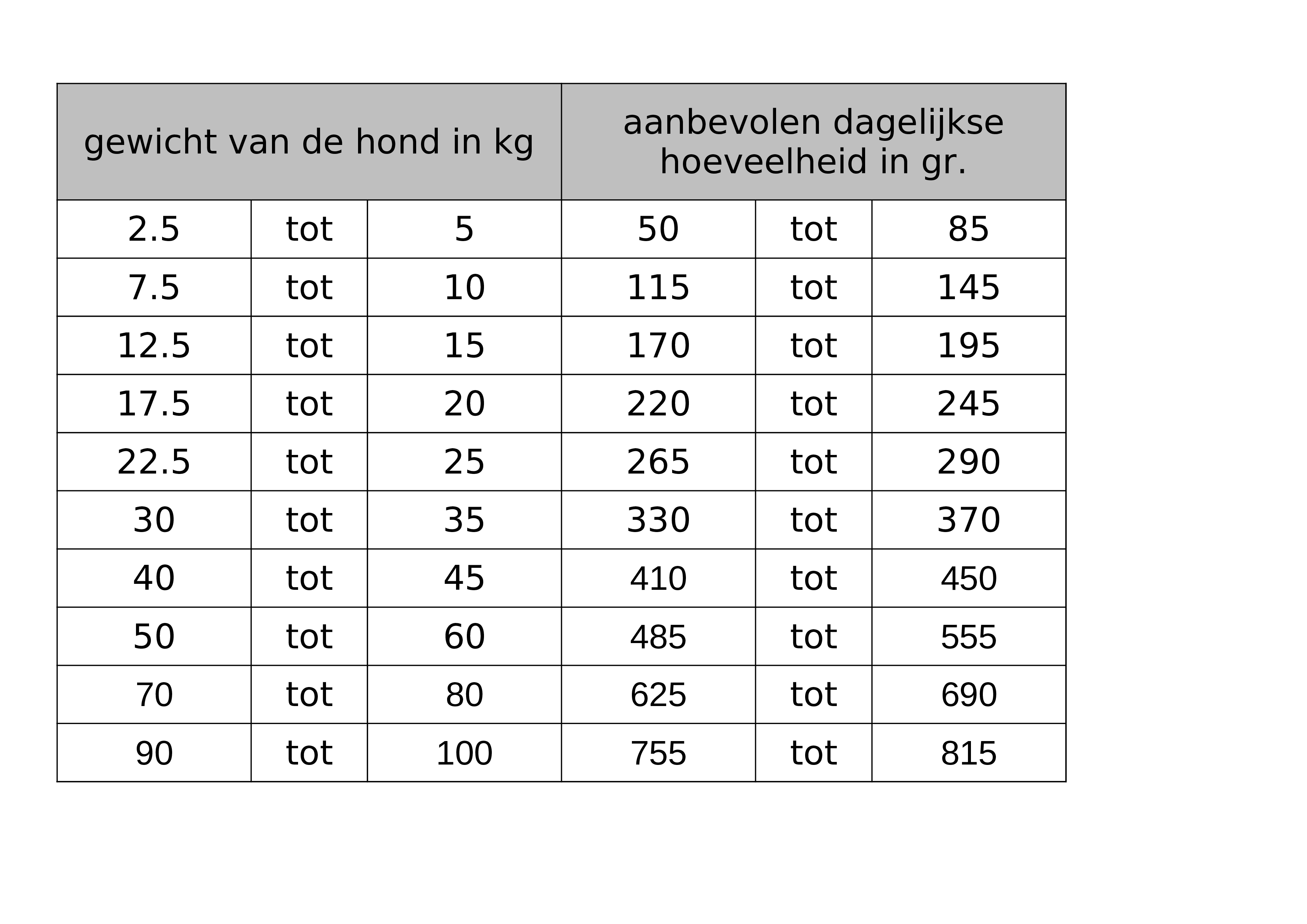 Droog of vochtig serveren. Zorg altijd dat er vers water voor de hond beschikbaar is. De bovenstaande aanbevolen hoeveelheden dienen te worden aangepast op basis van levensstijl, leeftijd en activiteitenniveau van de hond. Aanvullende supplementen zijn in principe niet nodig, tenzij voorgeschreven door de dierenarts.