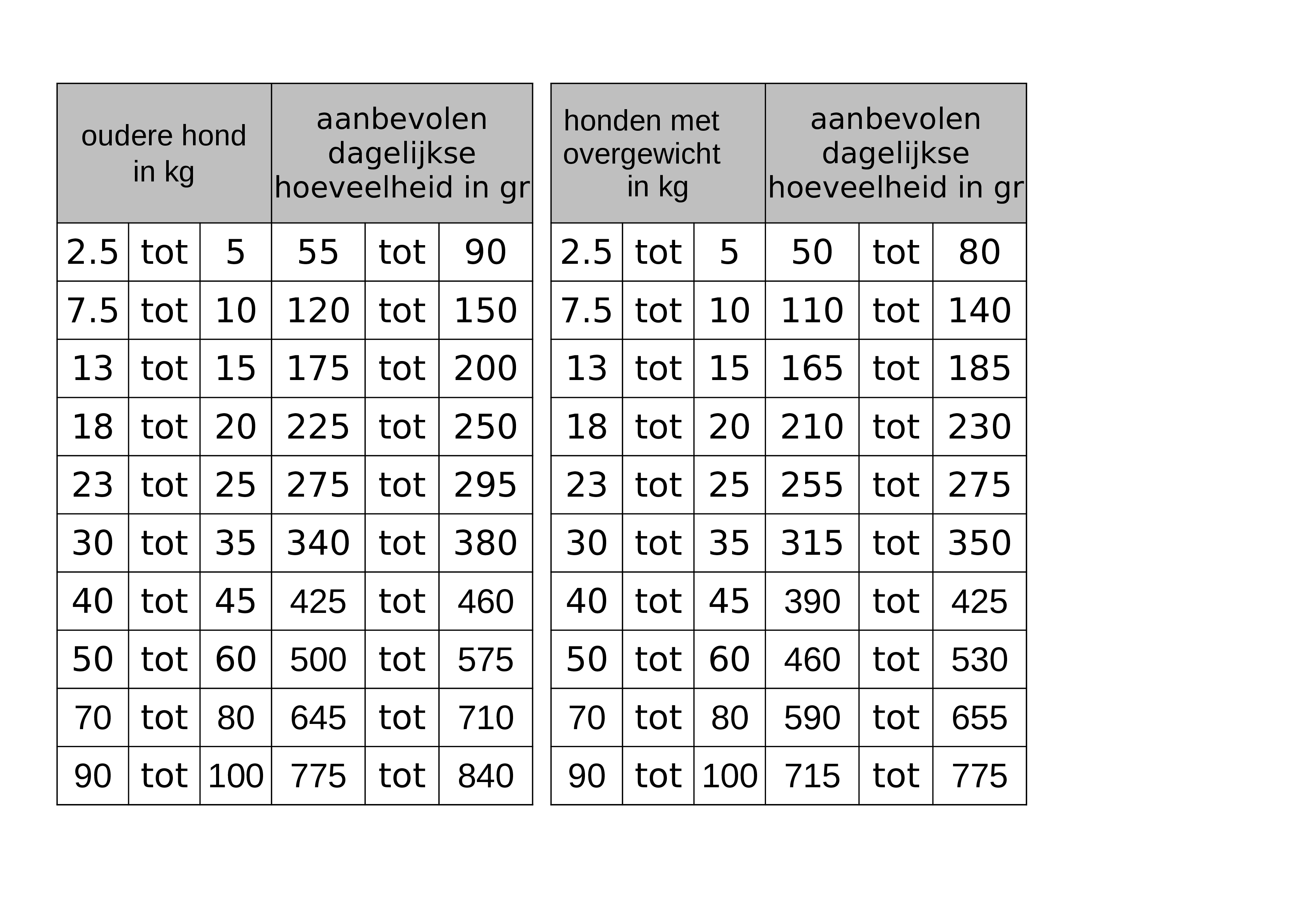• Geschikt voor oudere honden (7+ jaar) en volwassen honden met overgewicht van alle rassen.